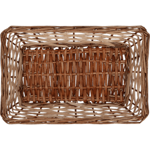 Rektangulær kurv laget av flettet pil som kan brukes til brød, rundstykker og baguetter, frukt og grønnsaker eller servietter og bestikk.